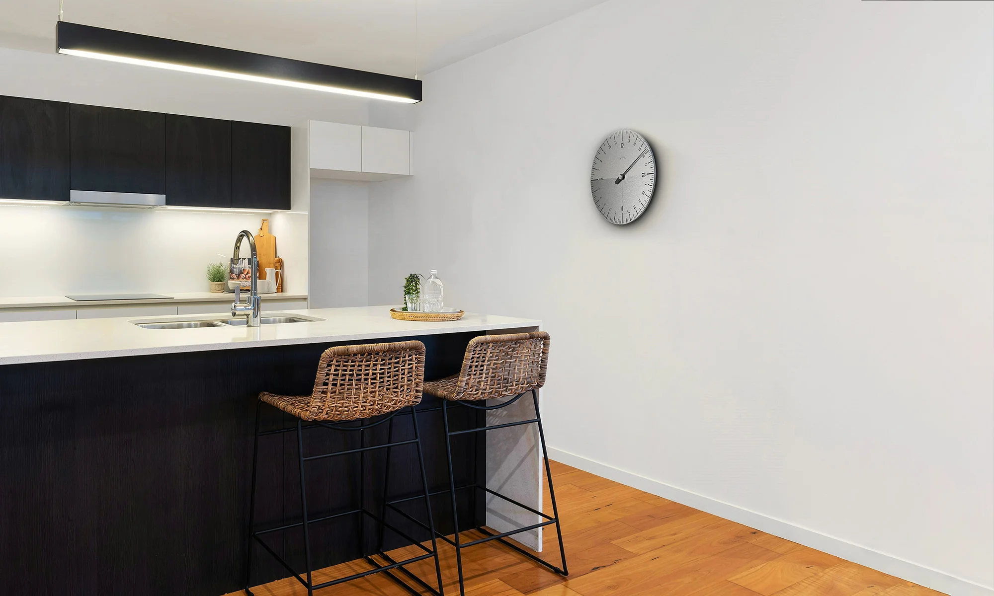 - Hochwertige Materialien: Die Wanduhr besteht aus eloxiertem Aluminium – leicht, robust und langlebig.
